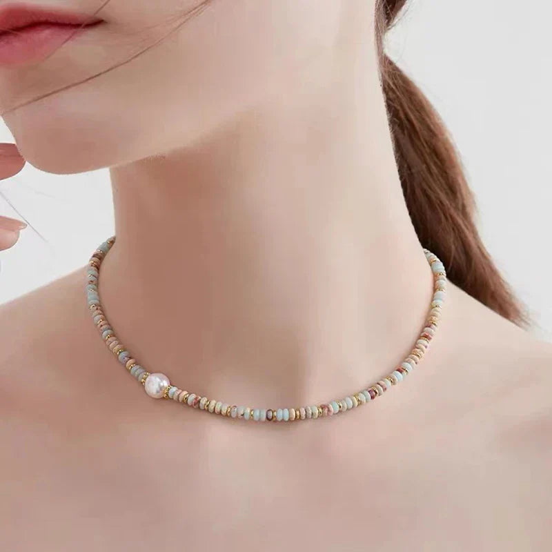 Natural Stone & Pearl Bead Bracelet